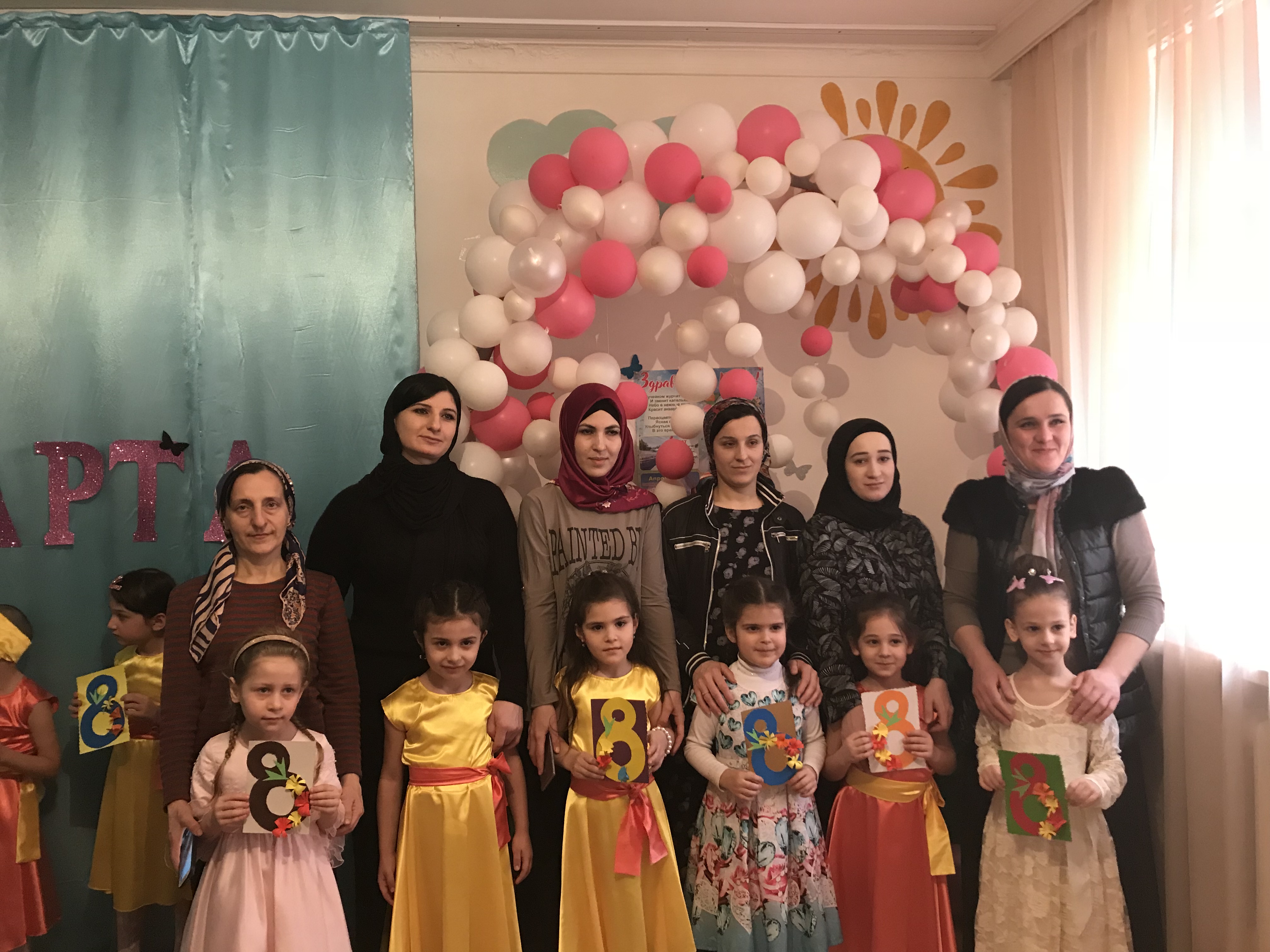 В честь международного женского дня в МБДОУ"Детский сад "Солнышко" с.Пригородное Грозненского муниципального района" , во всех возрастных группах прошли утренники.